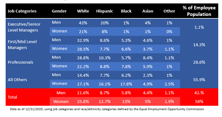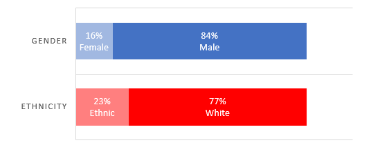 We are proud of the diversity of our workforce but know there is still work to be done. We have set goals internally to increase diversity within our senior level roles both in terms of gender as well as ethnicity.